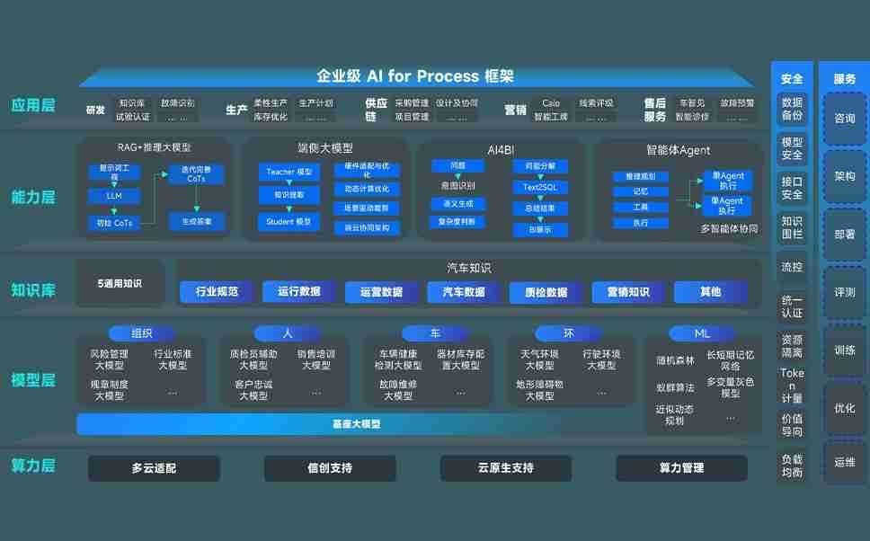 端到端的一站式AI工作空间深度融合了从企业战略规划到日常经营的全流程业务板块,,,,定向解决车企内部领域多、、、部门多、、链条长、、、、场景碎片化等难题,,支持车企快速构建以AI为核心的生产力写作体系,,实现任务执行与AI能力的无缝集成与交互
